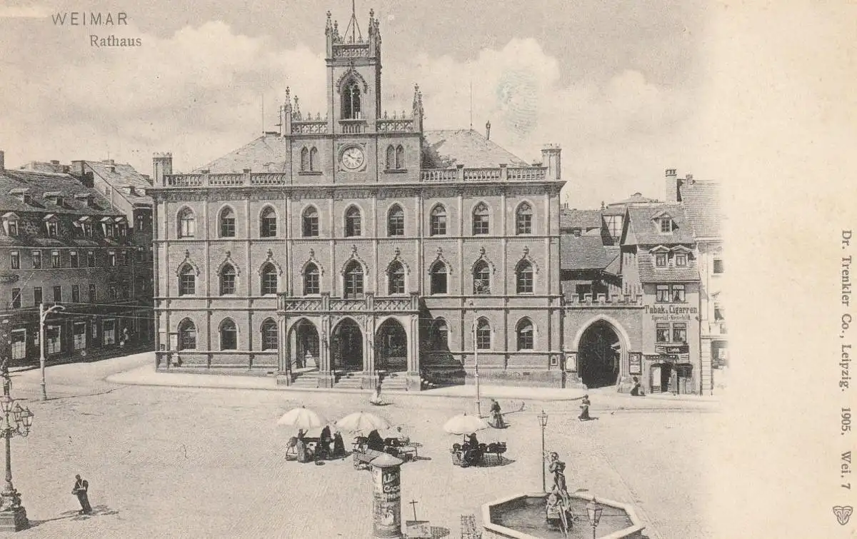 0-5300 WEIMAR, Kleiner Wochenmarkt vor dem Rathaus, Litfaßsäule, 1905, Trenkler
