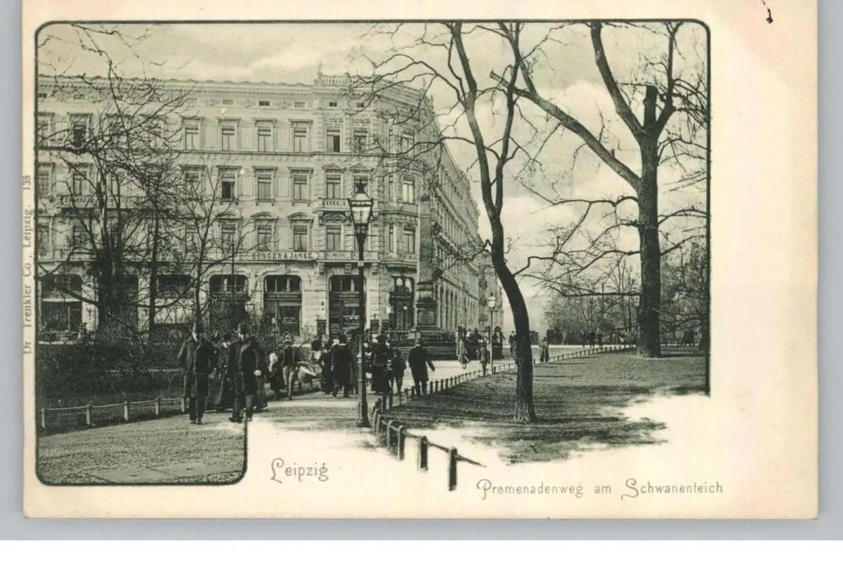 0-7000 LEIPZIG, Promenadenweg am Schwanenteich, belebte Szene, Verlag Trenkler # 138, ca. 1900