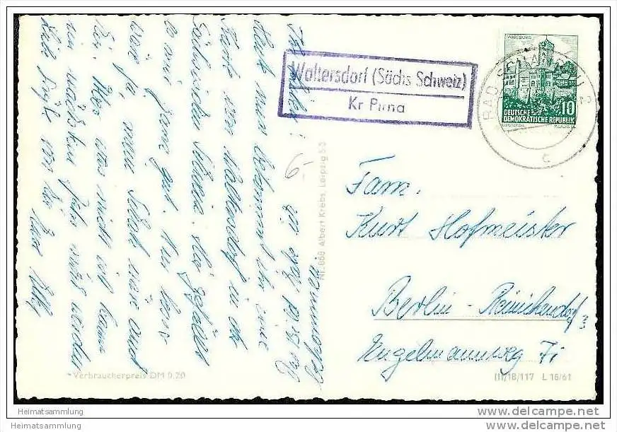 01814 Hotel zum Polenztal - Posthilfsstellenstempel Waltersdorf (Sächs Schweiz) über Kr. Pirna - Verlag Albert Krebs (G23136) gel. 1962