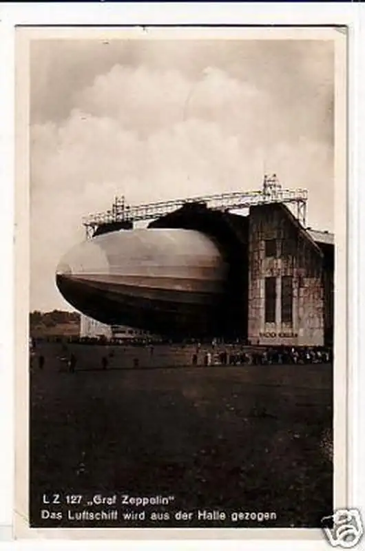 Das Luftschiff wird aus der Halle gezogen, gelaufen, gute Erhaltung (geringe Altersspuren) siehe Bild,