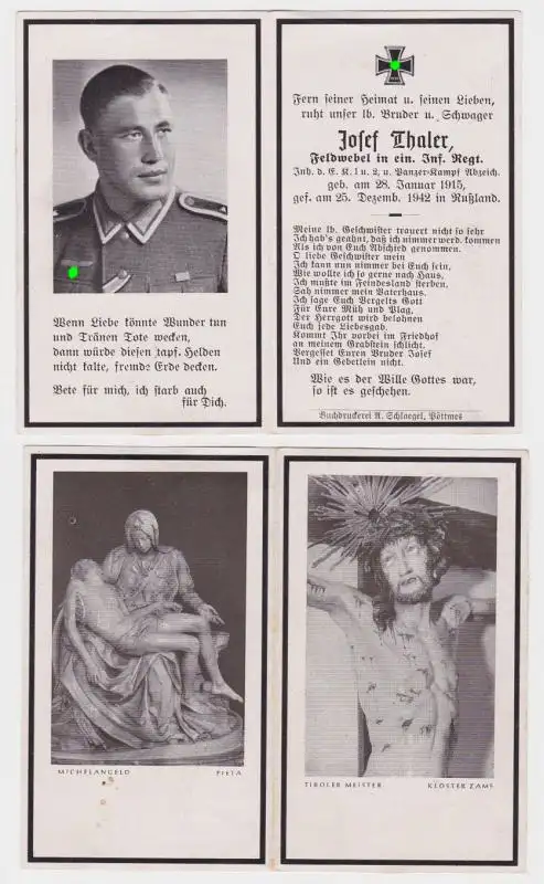 02698 Sterbebild WK2 Panzer-Kampfabzeichen EK 1 + 2 gefallen 1942 Russland