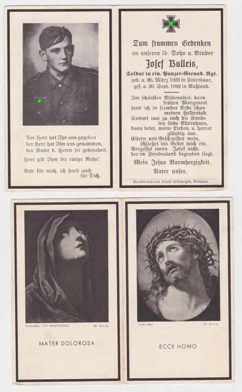 04822 Sterbebild WK2 Soldat Panzer-Grenadier Regiment Russland 1942