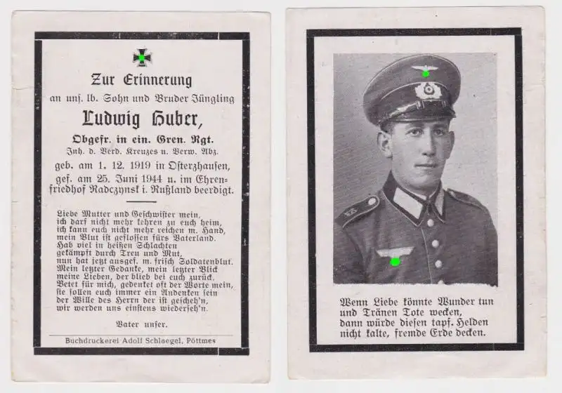 04881 Sterbebild WK2 Obgfr. Grenadier Regiment Ehrenfriedhof Radczynsk 1944
