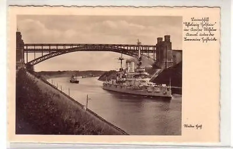Linienschiff "Schlweswig Holstein" im Kaiser Wilhelm Kanal unter der Levensauer Hochbrücke, ungelaufen, gute Erhaltung siehe Bild,