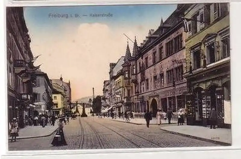 06048 Ak Freiburg i.B. Kaiserstraße mit Geschäften um 1910