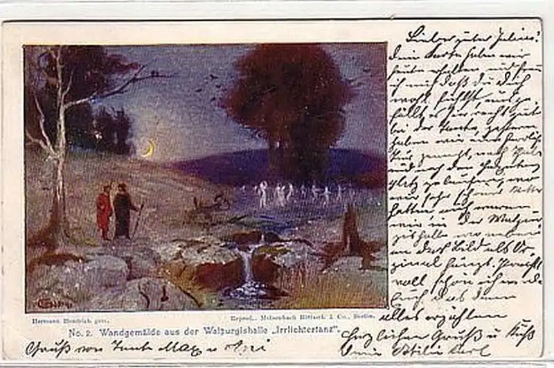 Nr.2 Wangemälde aus der Walpurgishalle "Irrlichtertanz" von Hermann Hendrich, gelaufen, gute Erhaltung (geringer Eckbug) siehe Bild,