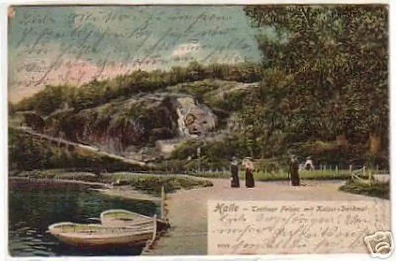 09574 Ak Halle Trothaer Felsen mit Kaiser Denkmal 1904
