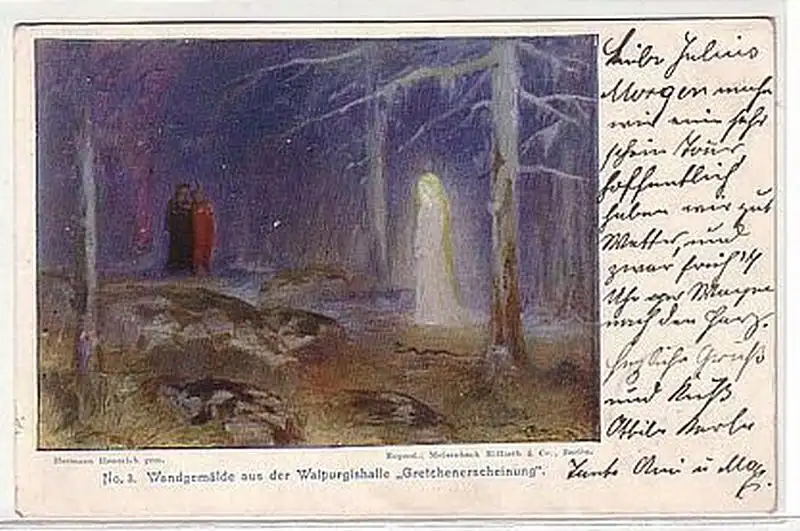 Nr.3 Wangemälde aus der Walpurgishalle "Gretchenerscheinung" von Hermann Hendrich, gelaufen, gute Erhaltung siehe Bild,
