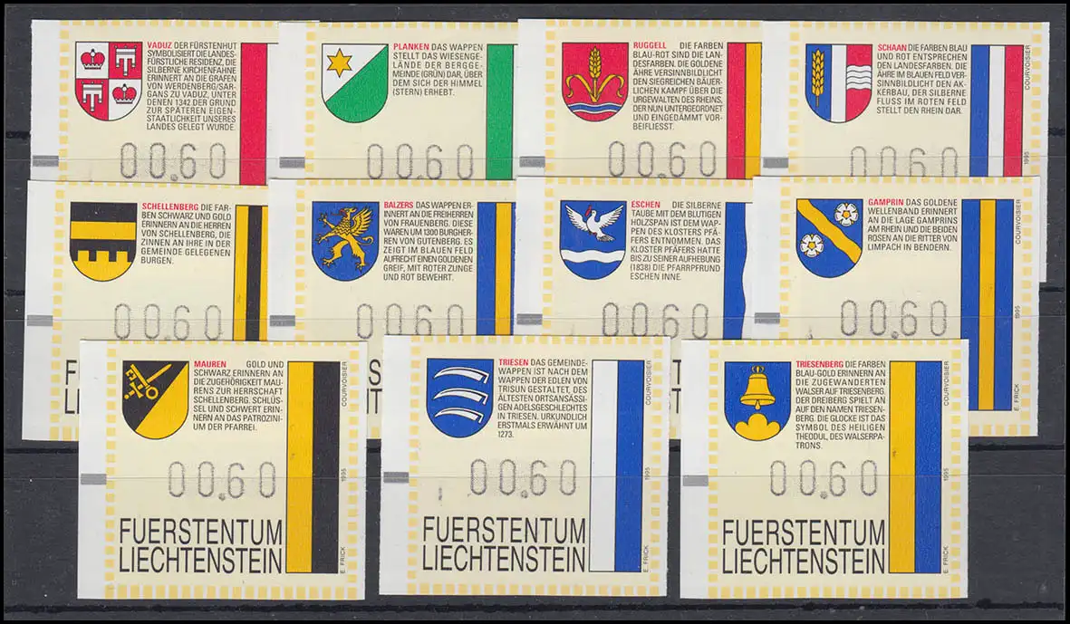 1-11 Liechtenstein-ATM 1995, 11 Werte komplett, Satz ** postfrisch