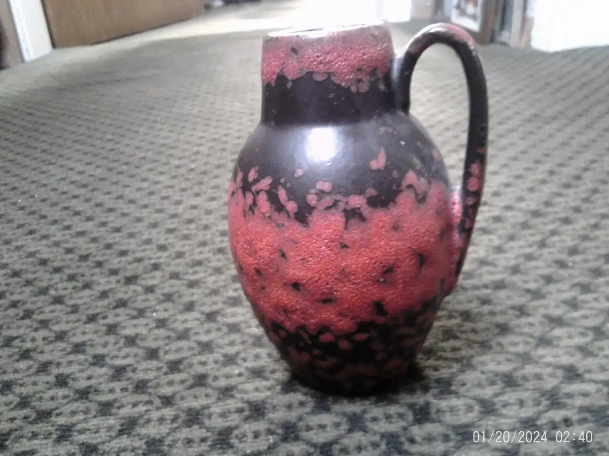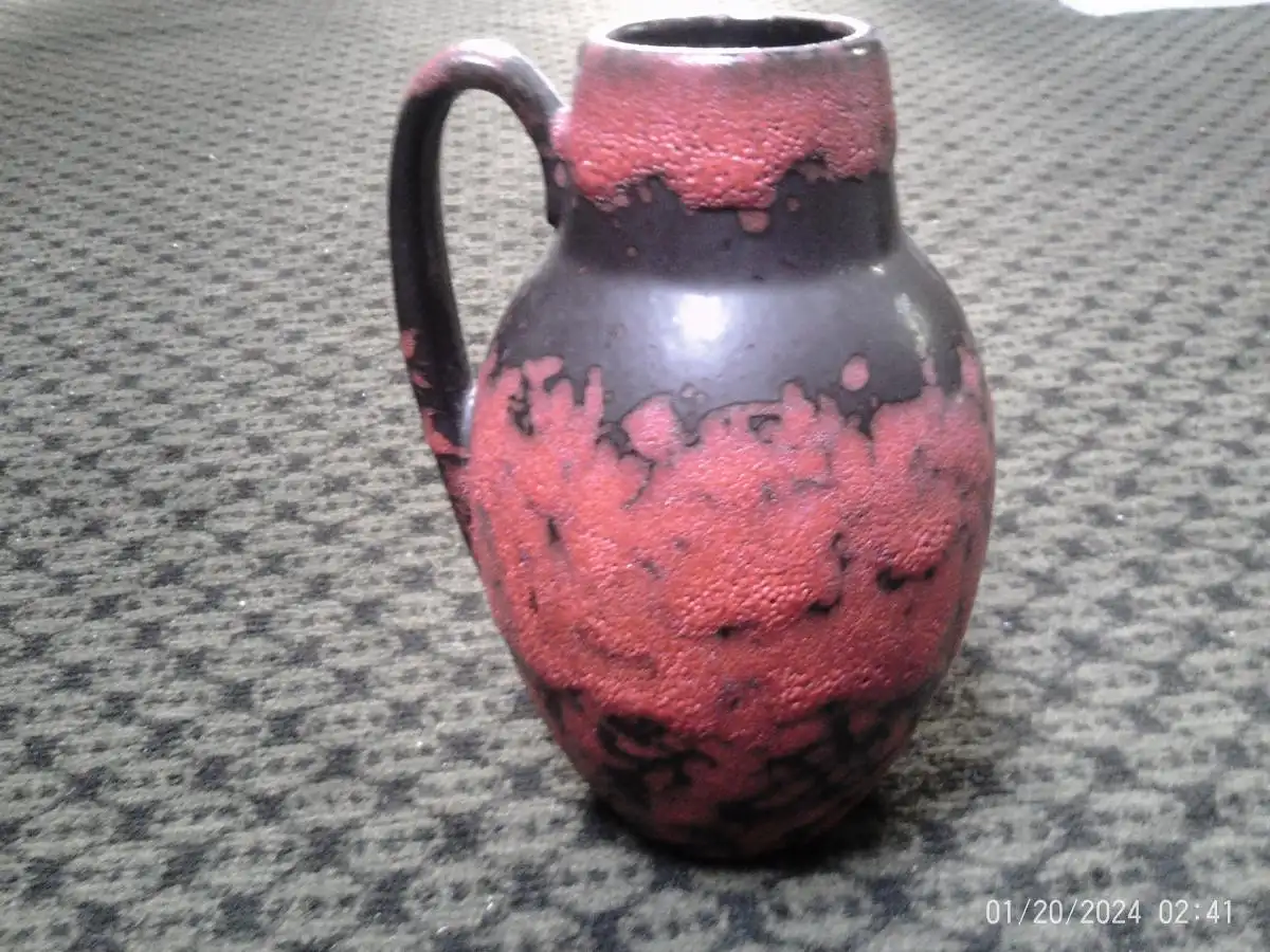 1 Heinz Siery Dekor Lora Rötliche Lauflasuren +Fat Lava Mid Century Scheurich Keramik Vase Vintage 60 Ära H: 16cm Formnummer: 414-16