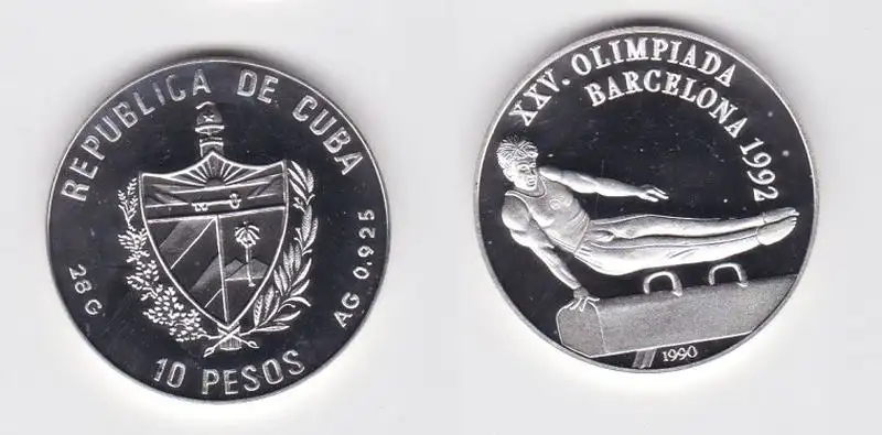 10 Pesos Silber M?nze Kuba 1990 Turner Olympiade Barcelona 1992 (155454)