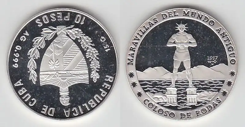 10 Pesos Silber M?nze Kuba Weltwunder der Antike, Koloss von Rhodos 1997 (116829