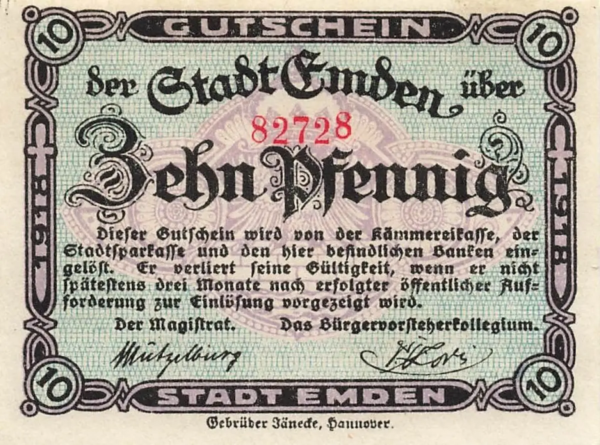 Original 10 Pfennig x Notgeld EMDEN Stadt