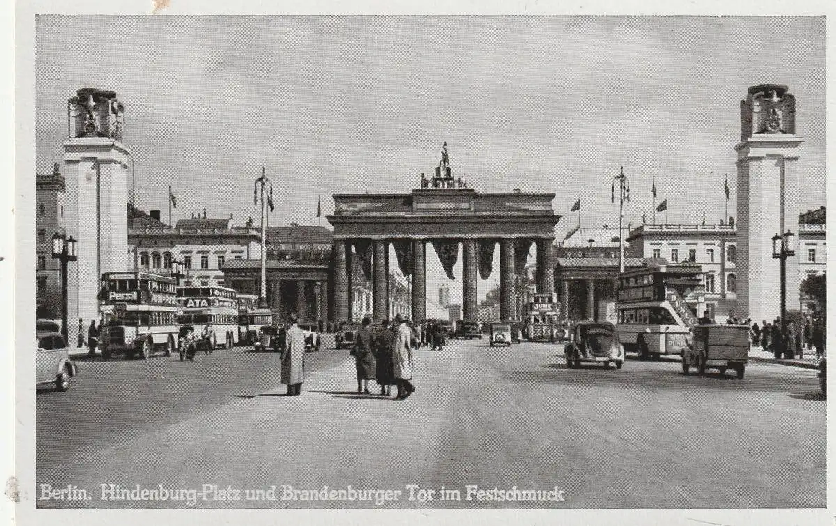 1000 BERLIN, BRANDENBURGER TOR im Festschmuck (NS-Beflaggung), Hindenburg-Platz, Oldtimer