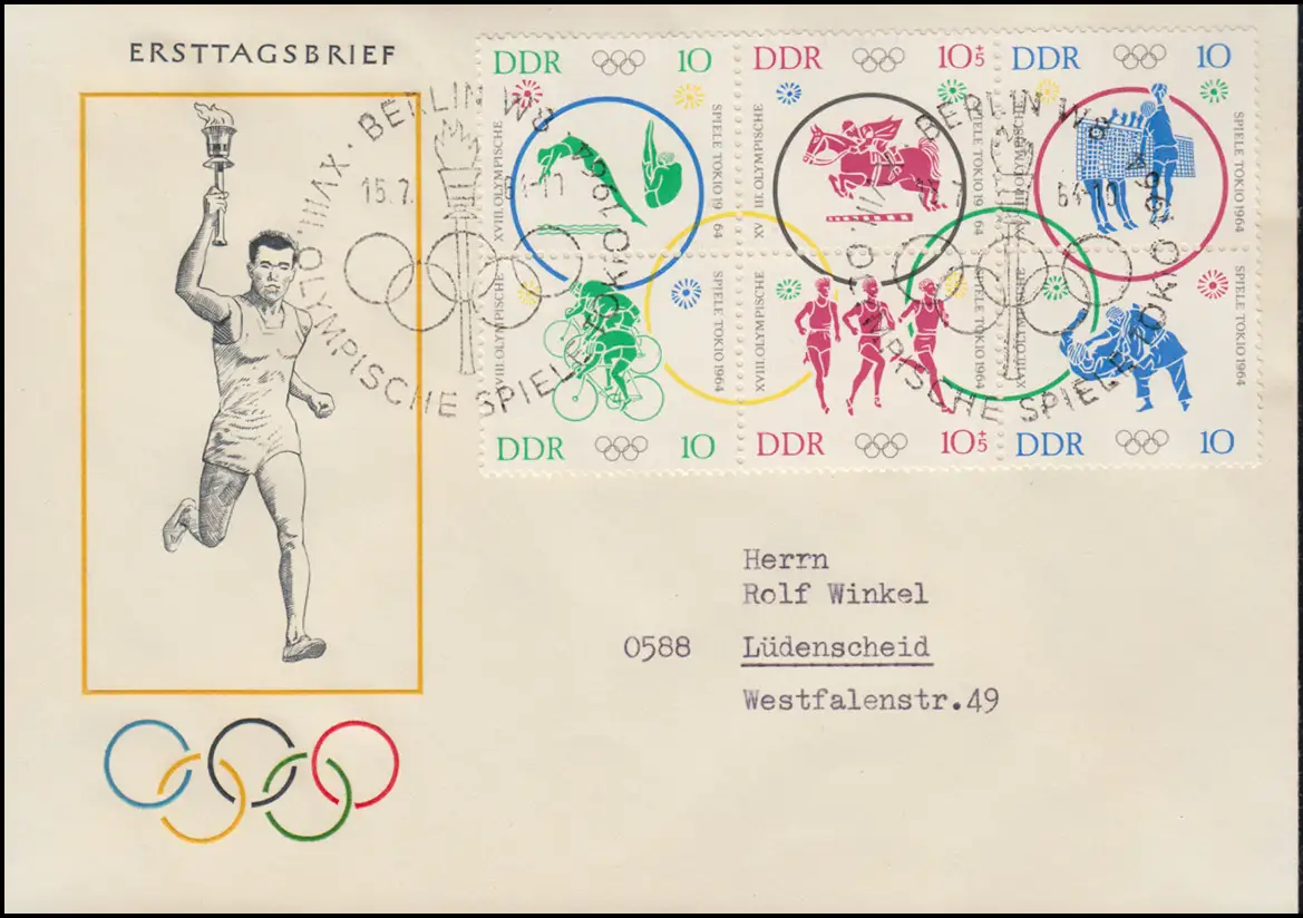 1039-1044 Olympiade Tokio Zusammendruck Sechserblock, Schmuck-FDC ESSt Berlin