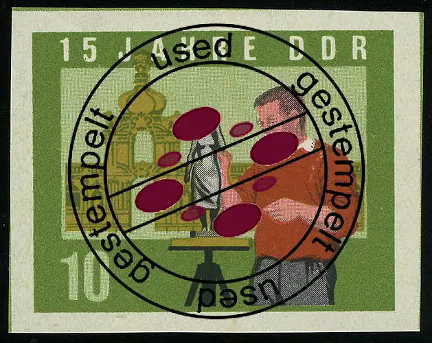 1071B DDR Bildhauer 10 Pf, UNGEZÄHNT, gestempelt O