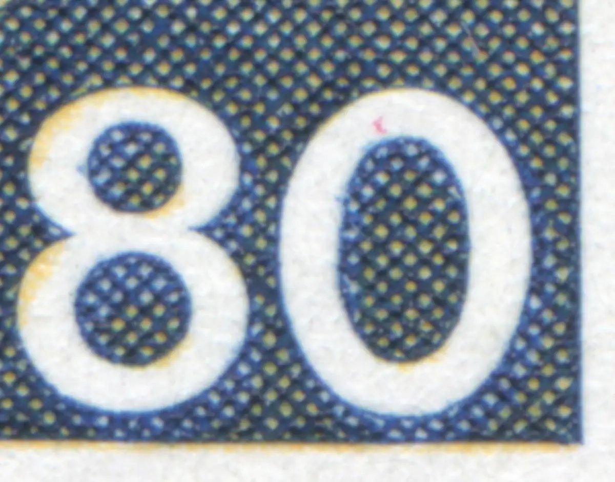 MICHEL-Plattenfehler II: roter Punkt oben in der "0" der Wertangabe "80", Felder 41-47 bzw. 38-50