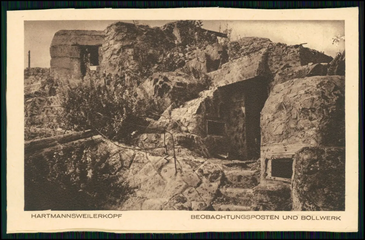 Motiv: Beobachtungsposten und Bollwerk auf dem Hartmannsweilerkopf – eindrucksvolle Steinbauten mit Scharten und Felsstellungen.