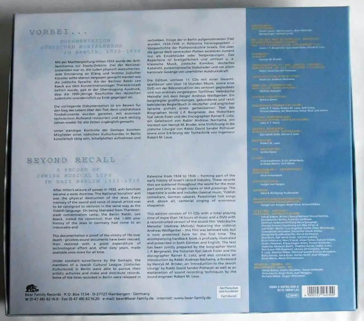 11 CD + 1 DVD Box Vorbei - Beyond Recall - Jüdisches Musikleben (Bear Family)