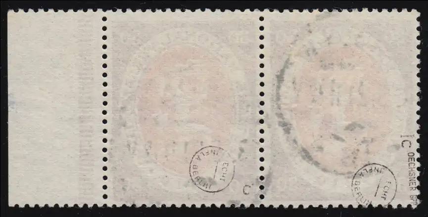 Ungefaltetes Randpaar mit VORSTUFE des MICHEL-PLF I: beschädigte 9 - 1019 statt 1919 auf Feld 99, gestempelt BERLIN W 18.5.21, von Oechner BPP schon als I geprüft. - Schöne Dokumentation!