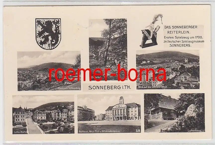 11320 Mehrbild Ak Sonneberg i.Th. mit Sonneberger Reiterlein 1946