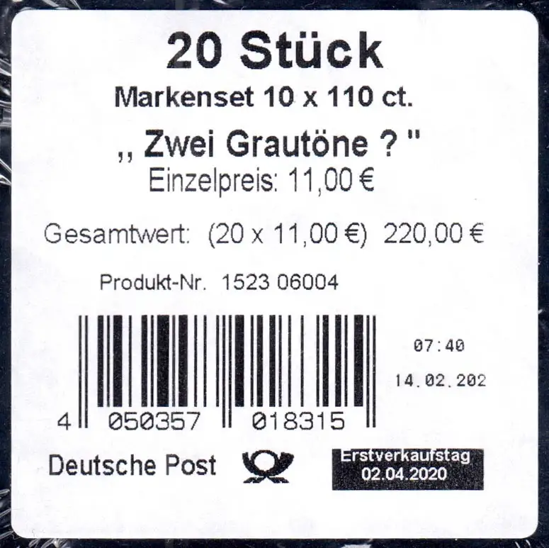 119 MH Zwei Grautöne, selbstklebend, BANDEROLE für 20 Markensets