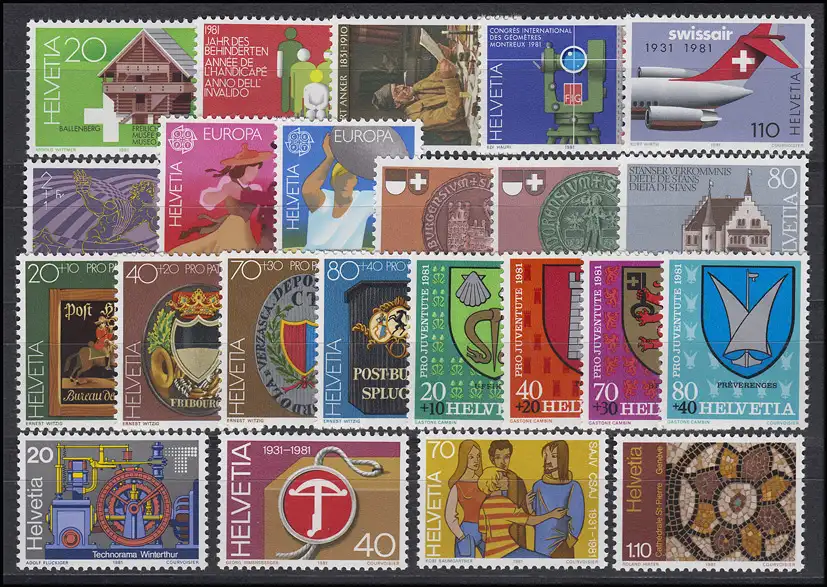 1191-1213 Schweiz-Jahrgang 1981 komplett, postfrisch **