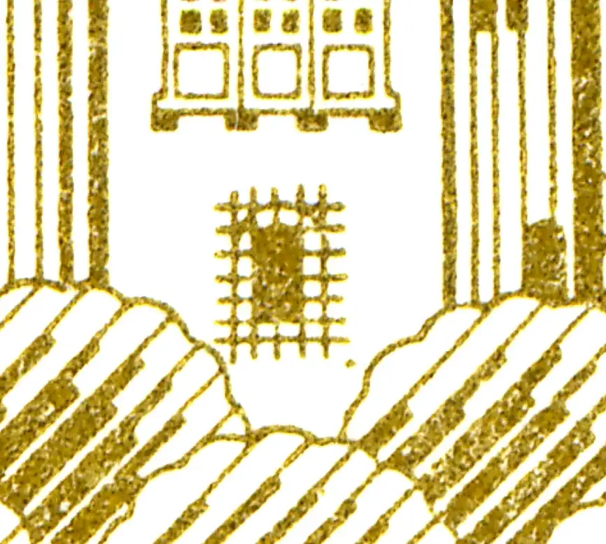 2 Anschriften, Briefmarken/HAWID; PLF II [PLF 534 III]: Fleck zwischen Fenstergitter und Busch, Feld 2