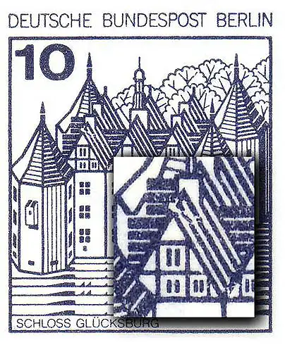 2 Anschriften, Briefmarken/HAWID; PLF VII [PLF 532 V]: Dachfirst beim linken Mittelhaus verbogen, Feld 7