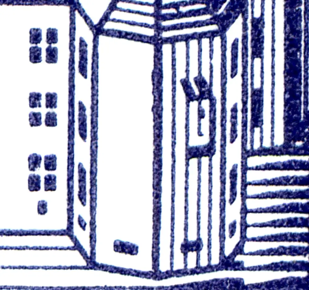 2 Anschriften, Sieger ETB / Postpreis; PLF XXV a: linksseitige starke Verdickung der senkrechten Turmlinie, Feld 1