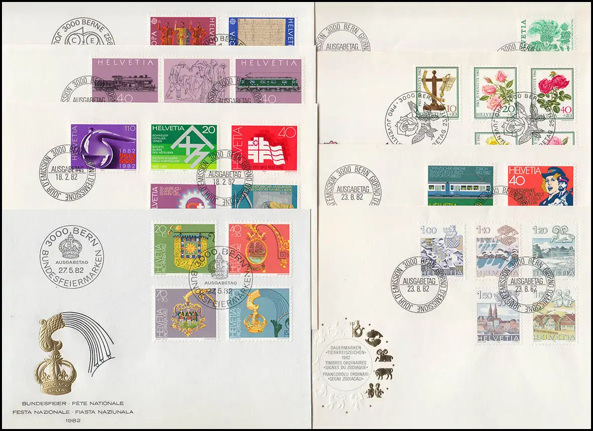 1214-1241 Schweiz-Jahrgang 1982 komplett auf Schmuck-FDC