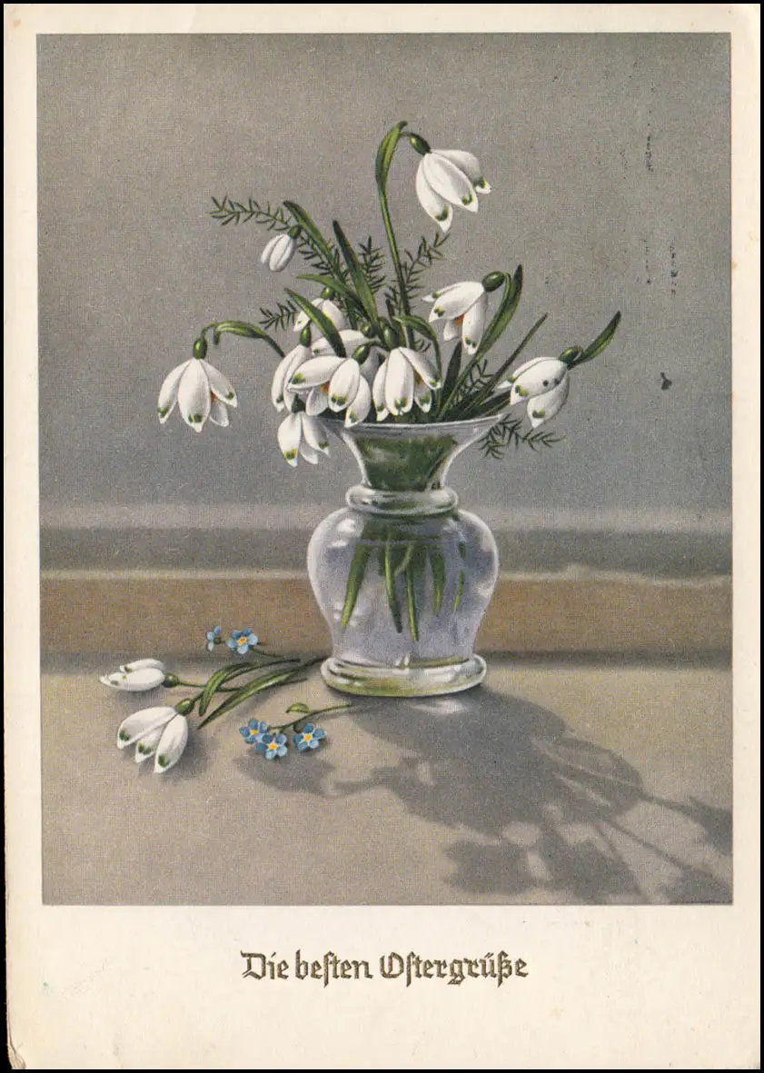 124 Posthorn 4 Pf. im Paar als MeF auf Ansichtskarte Ostern, MÜNCHEN 17.4.1954
