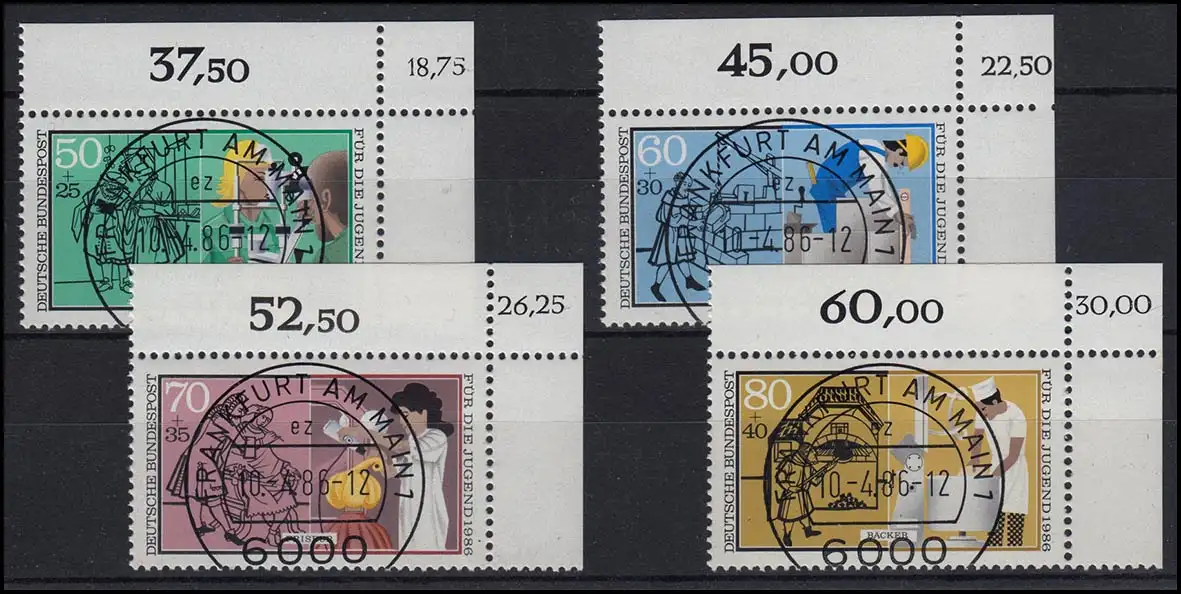 1274-1277 Jugend 1986 Handwerksberufe Optiker Maurer Frisör Bäcker - KBWZ O FfM