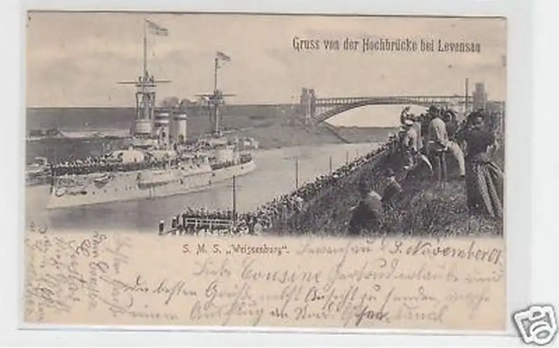 Gruß von der Hochbrücke bei Levensau, gelaufen mit Bahnpoststempel, gute Erhaltung siehe Bild,