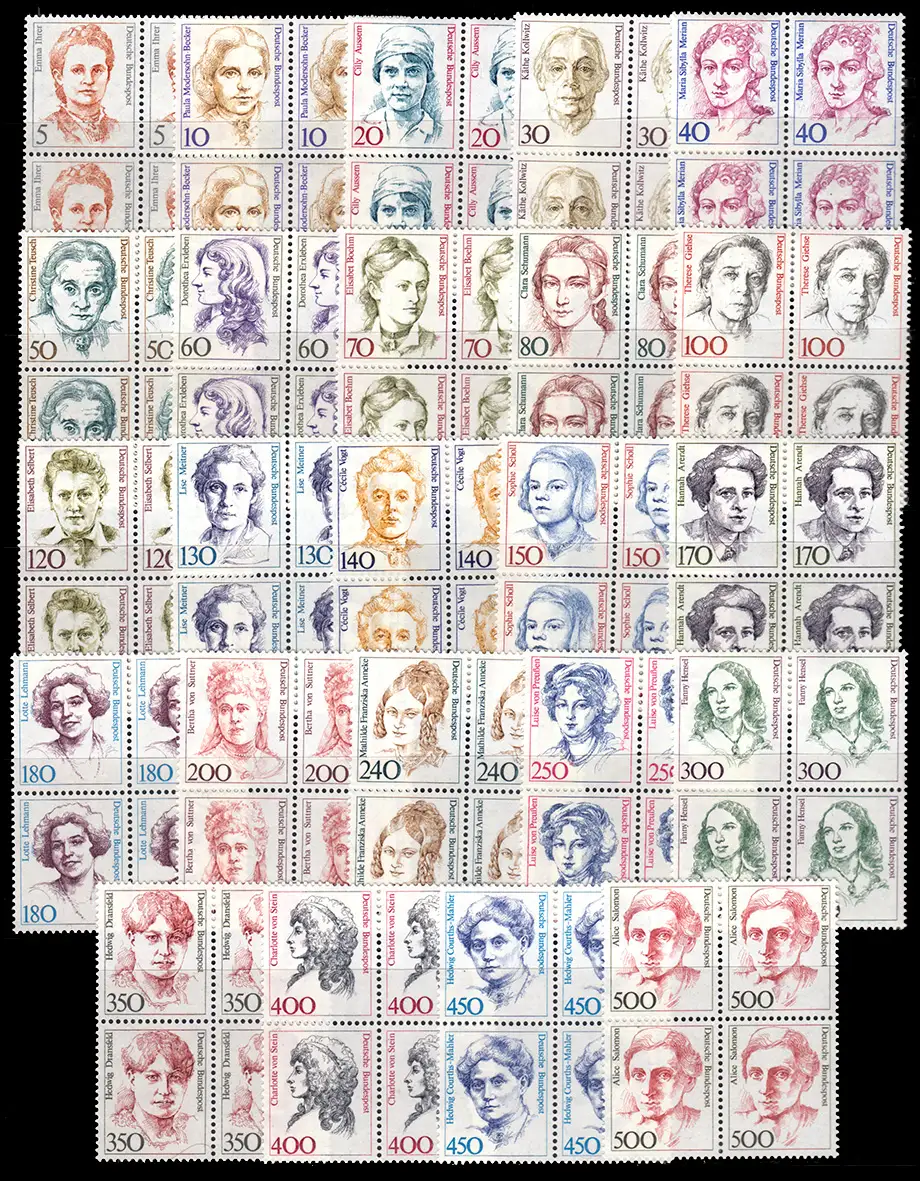 1304 ff Frauen, 24 Werte aus 100er-Bögen, Viererblöcke Satz ** postfrisch kpl.