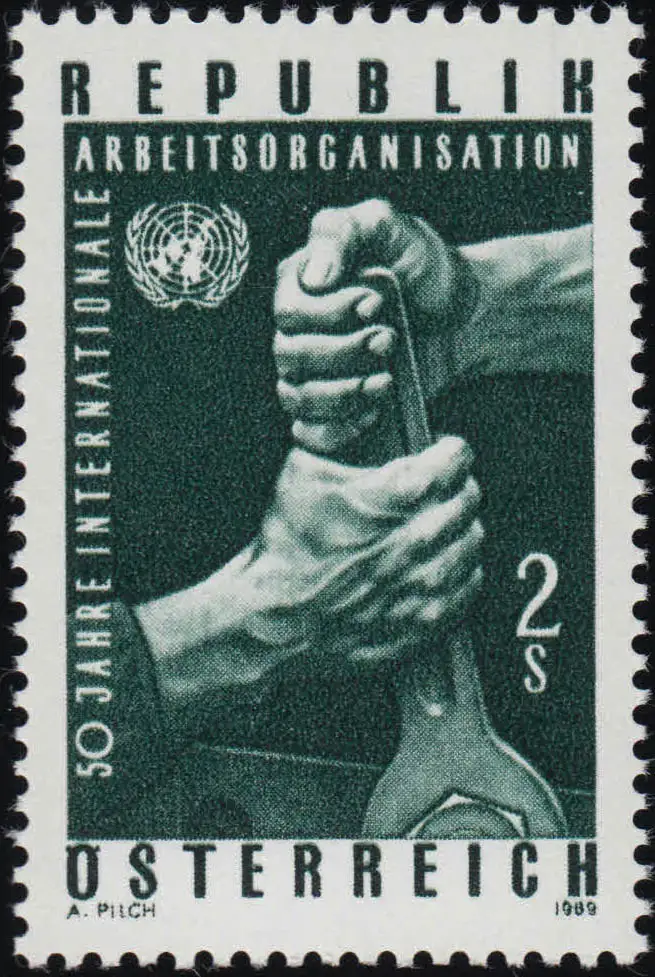 1305 Arbeitsorganisation, 2 Fäuste Schraubenschlüssel UNO Emblem, 2 S **