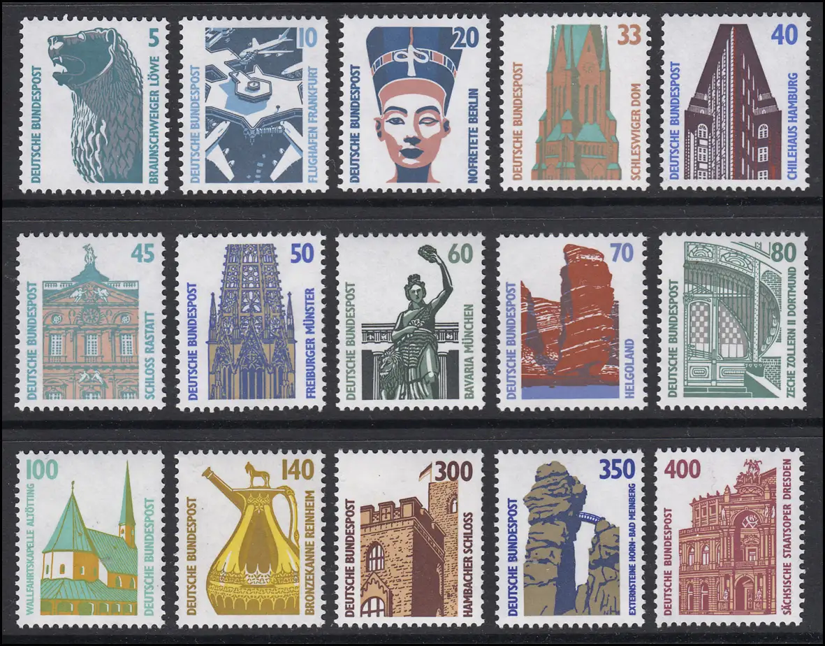 15 Wertstufen der ab 1987 verausgabten Dauerserie SWK mit gelblicher Gummierung wurden mit der neuen, weißen (Gummi 30) ab Mitte der 90er-Jahre nachgedruckt.