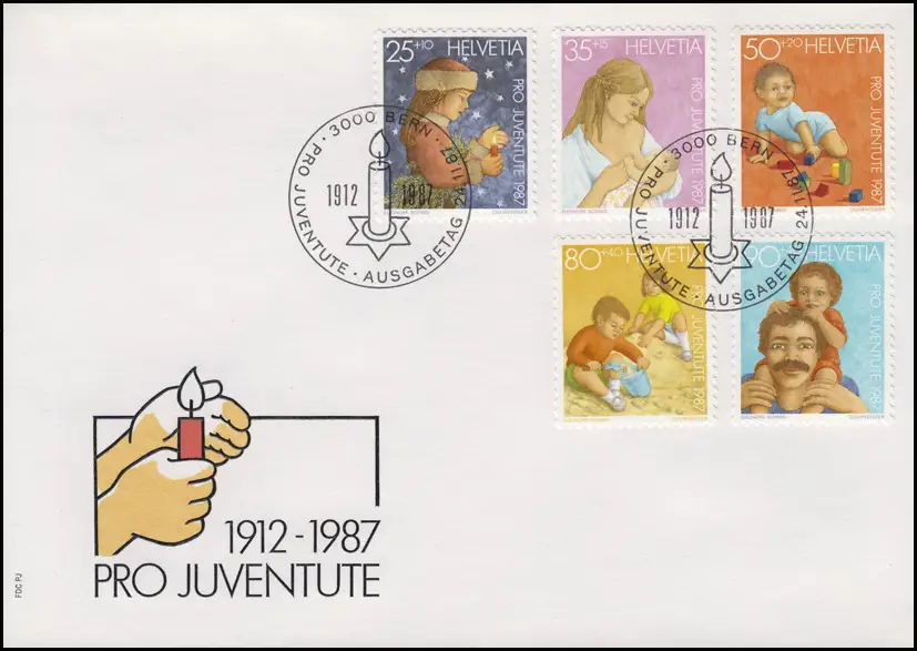 1359-1363 Pro Juventute: Entwicklung des Kindes, Satz auf Schmuck-FDC BERN 1987