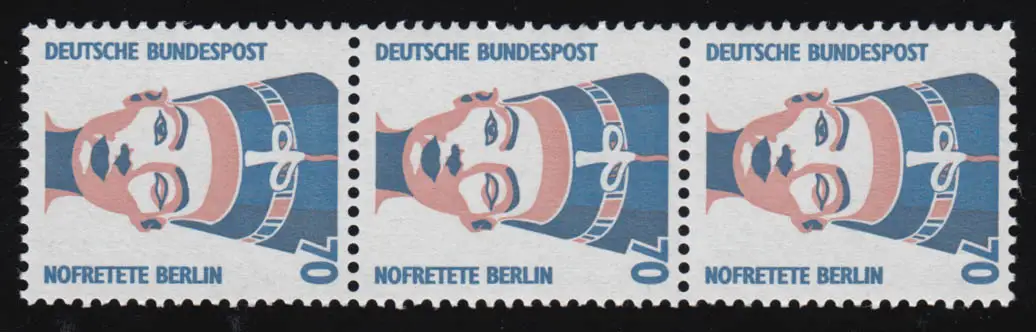 1374 SWK gelbe Gum. 70 Pf Nofretete, 3er-Streifen + Nr. **
