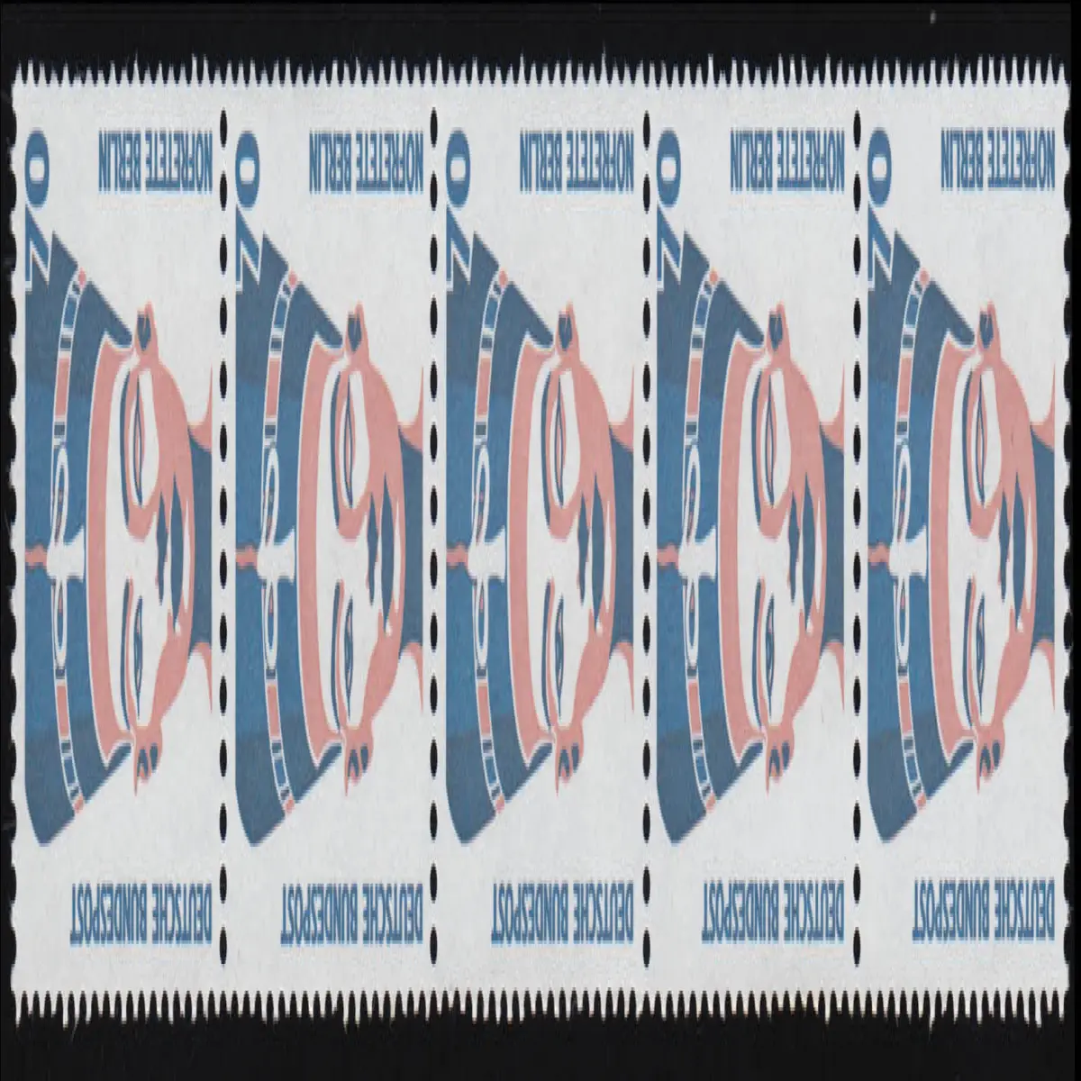 1374 SWK gelbe Gum. 70 Pf Nofretete, 5er-Streifen + Nr. **