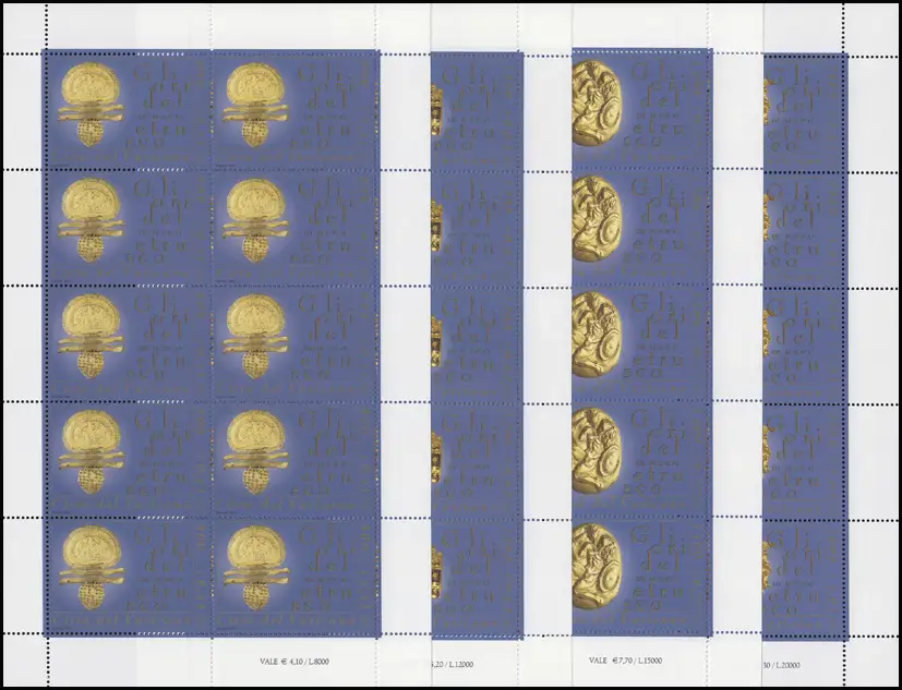 1386-1389 Kleinbogen Goldexponate des Etruskischen Museums, Kleinbogen-Satz **