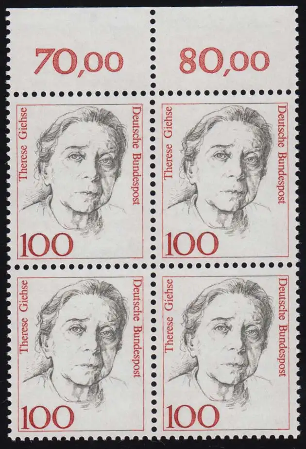 1390 Frauen Therese Giehse 100 Pf OR-Viererbl. ** postfrisch
