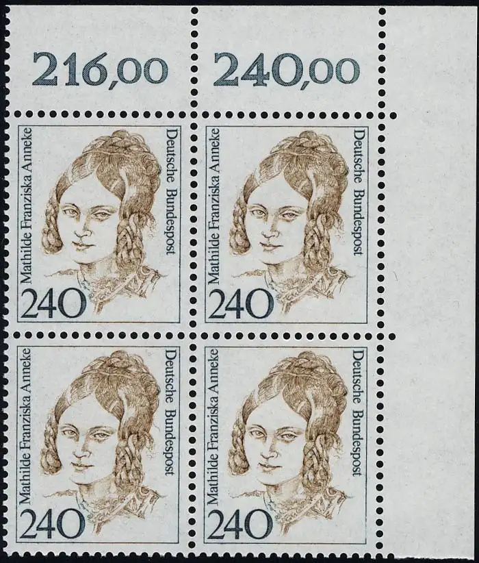 1392 Frauen Mathilde Franziska Anneke 240 Pf Eck-Vbl. or ** postfrisch