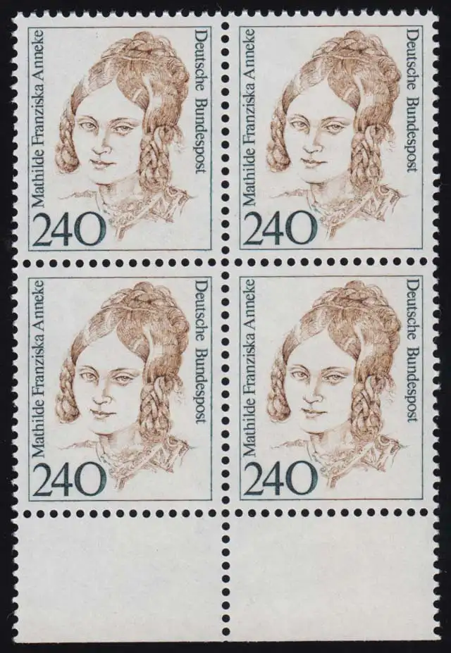 1392 Frauen Mathilde Franziska Anneke 240 Pf UR-Viererbl. ** postfrisch