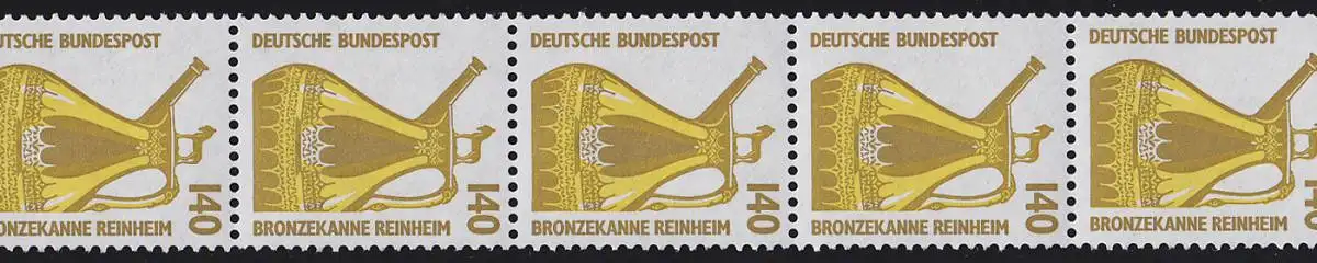 1401v SWK mit seltener weißer Gummierung 140 Pf, 11er-Streifen mit 3 Nummern **