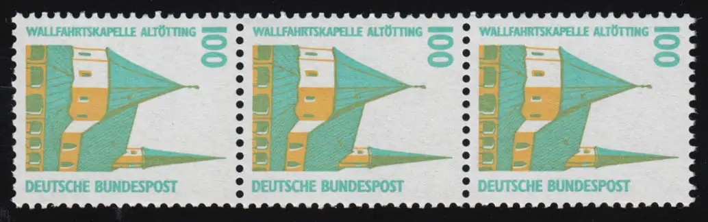 1406u SWK gelbe Gum. 100 Pf 500er-Rolle, 3er-Streifen + Nr. **