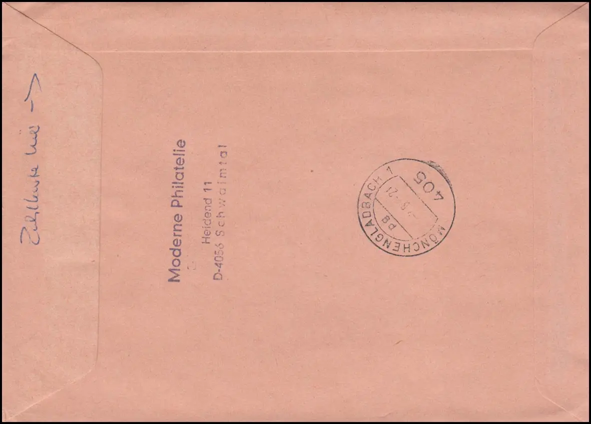 Wert-FDC per Nachnahme und als Eilsendung / Express nach Düsseldorf über MÖNCHENGLADBACH 1