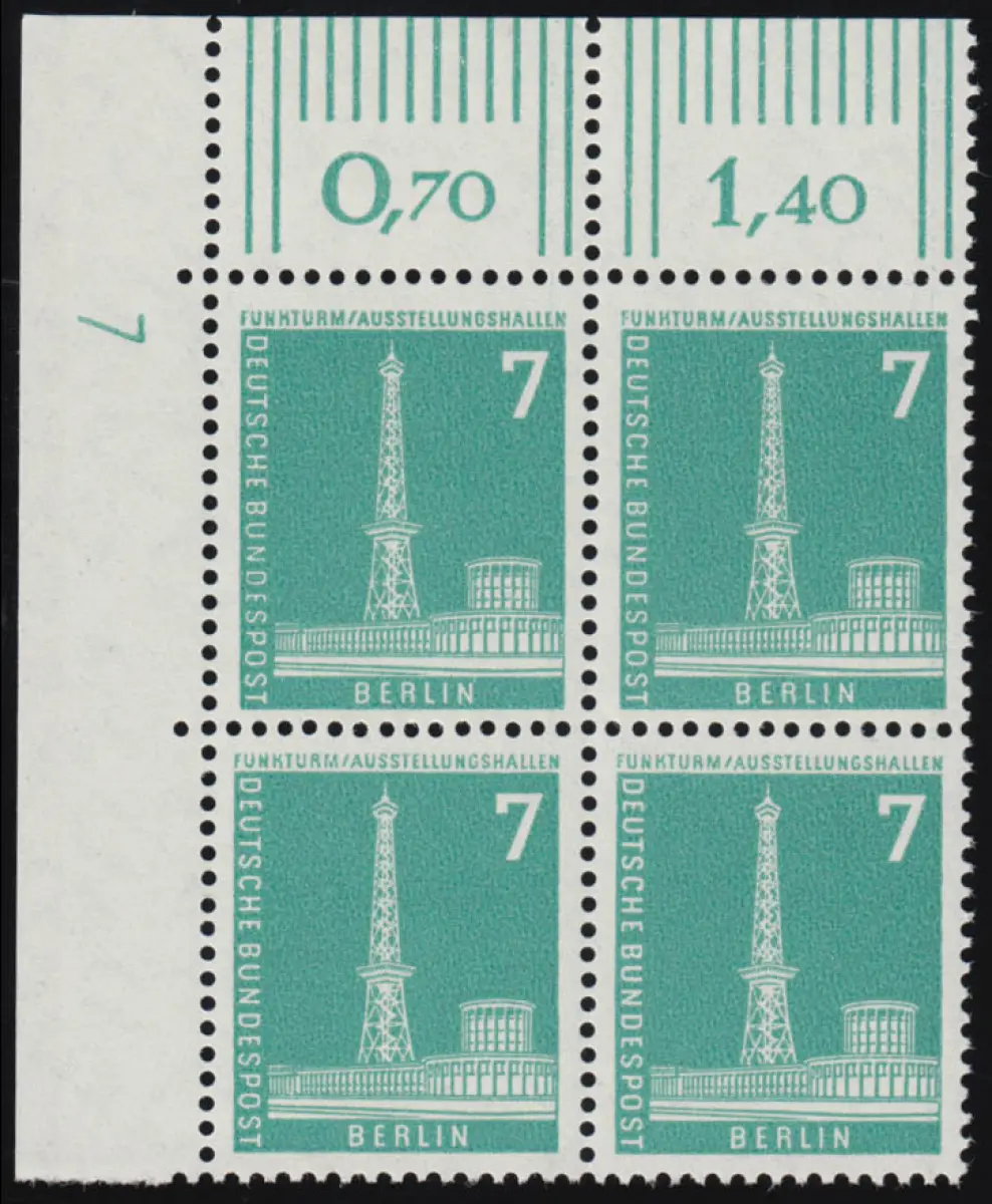 142w Stadtbilder 7 Pf Druckerzeichen DZ 7 neben F.1, Eck-Vbl. o.l. ** postfrisch