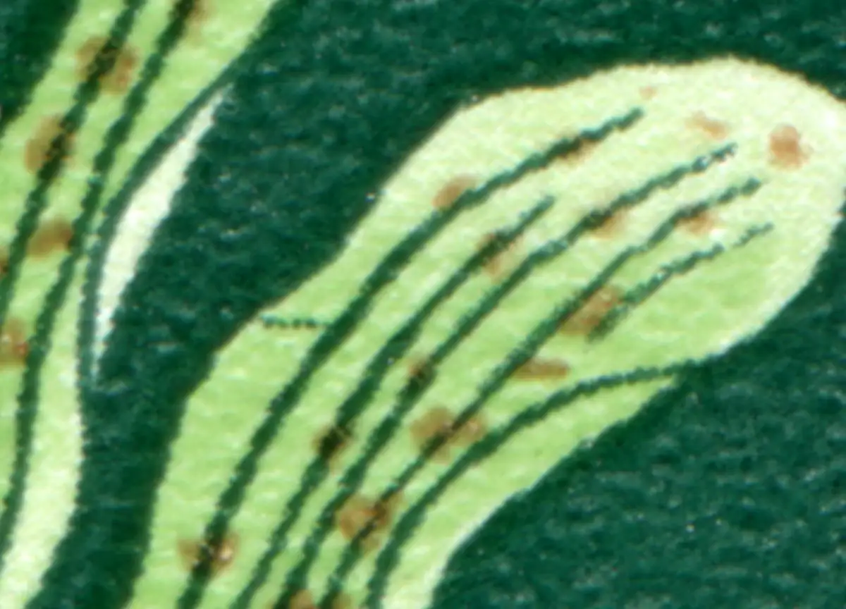 Plattenfehler: kleiner grüner Strich (mehrere Punkte) oben links im rechten unteren Blatt
