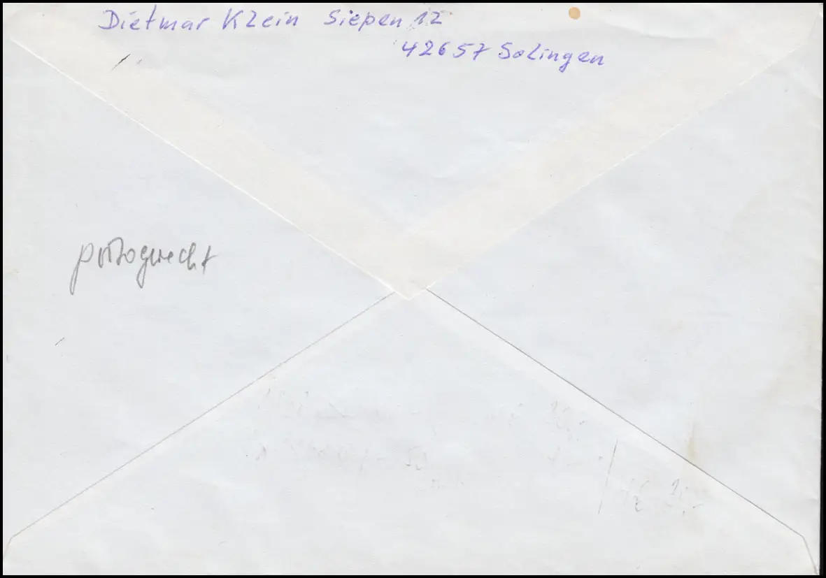 1469 SWK 45 Pf zwei Rollenmarkenstreifen mit Nummer MeF R-Brief SOLINGEN 19.6.95
